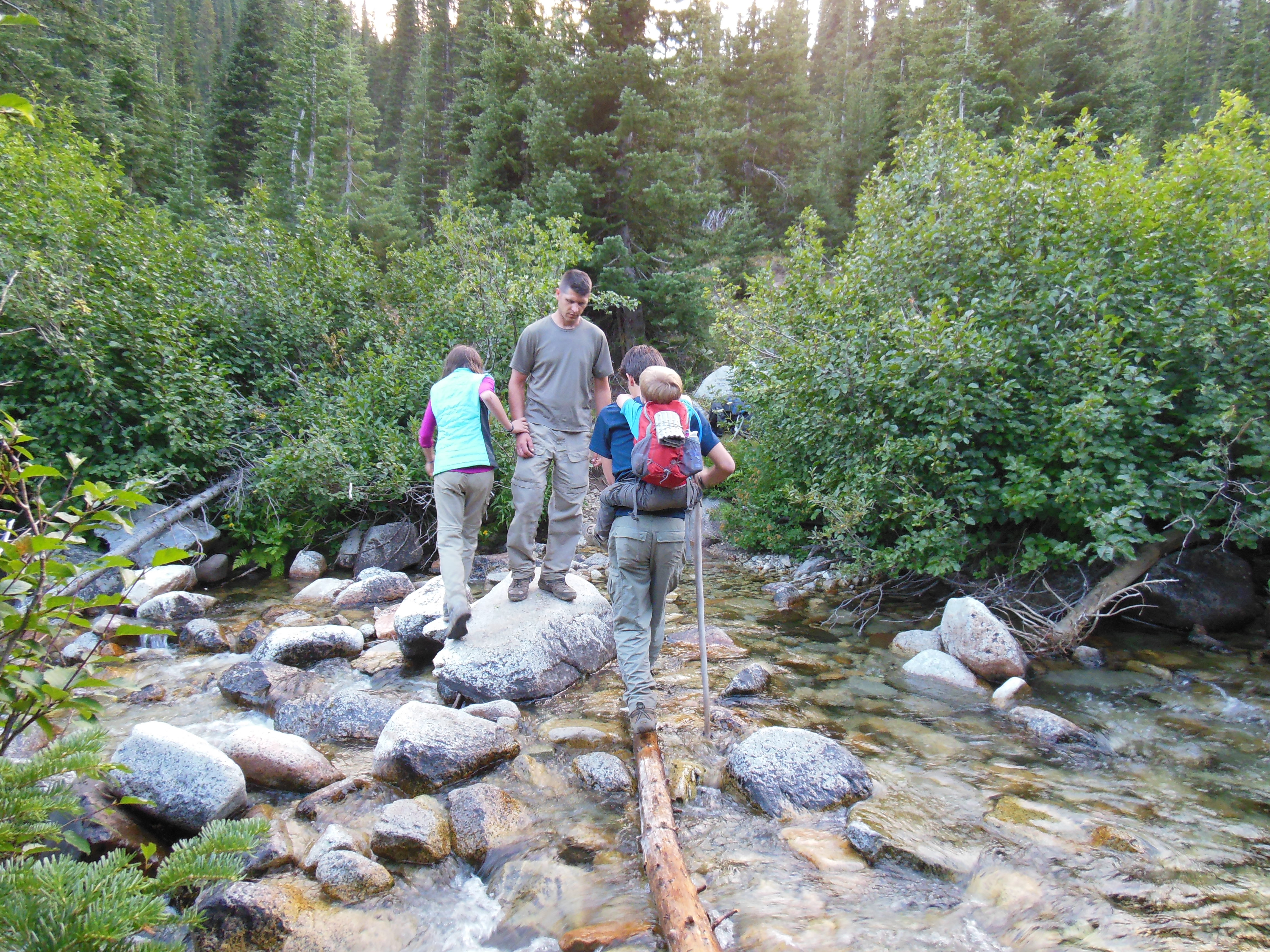 We finished our afternoon by hiking to the turn-off toward Moon Lake, crossed the creek, set up camp, and ate a quick snack of Shortbread Biscuits with peanut butter and honey. After a couple of personalized bedtime stories by Ellie, we retied for the night.