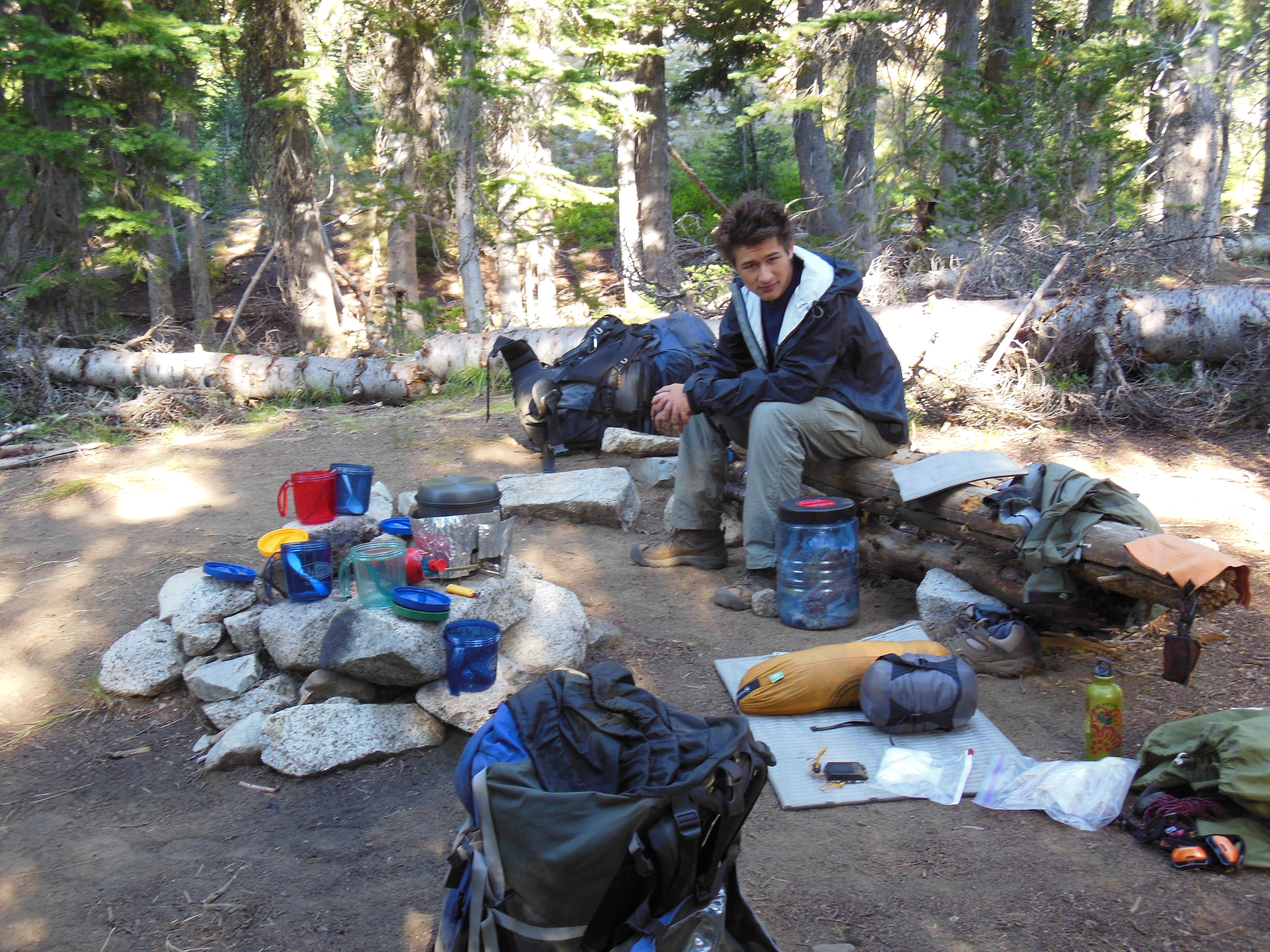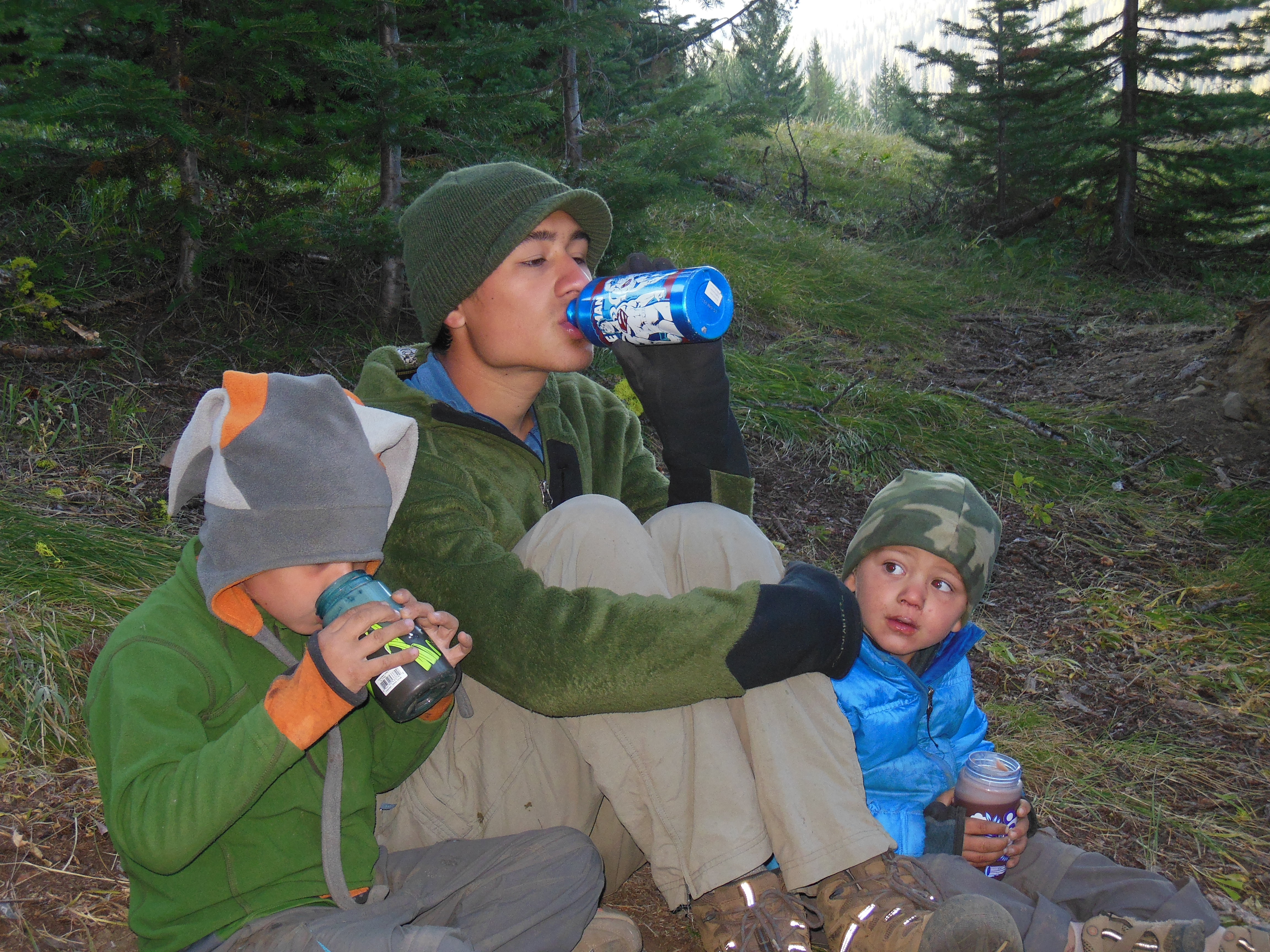The end of the hike that day was so tiring, Rhys and Keenan almost fell asleep on the trail and did fall asleep on each other while we were setting up camp.