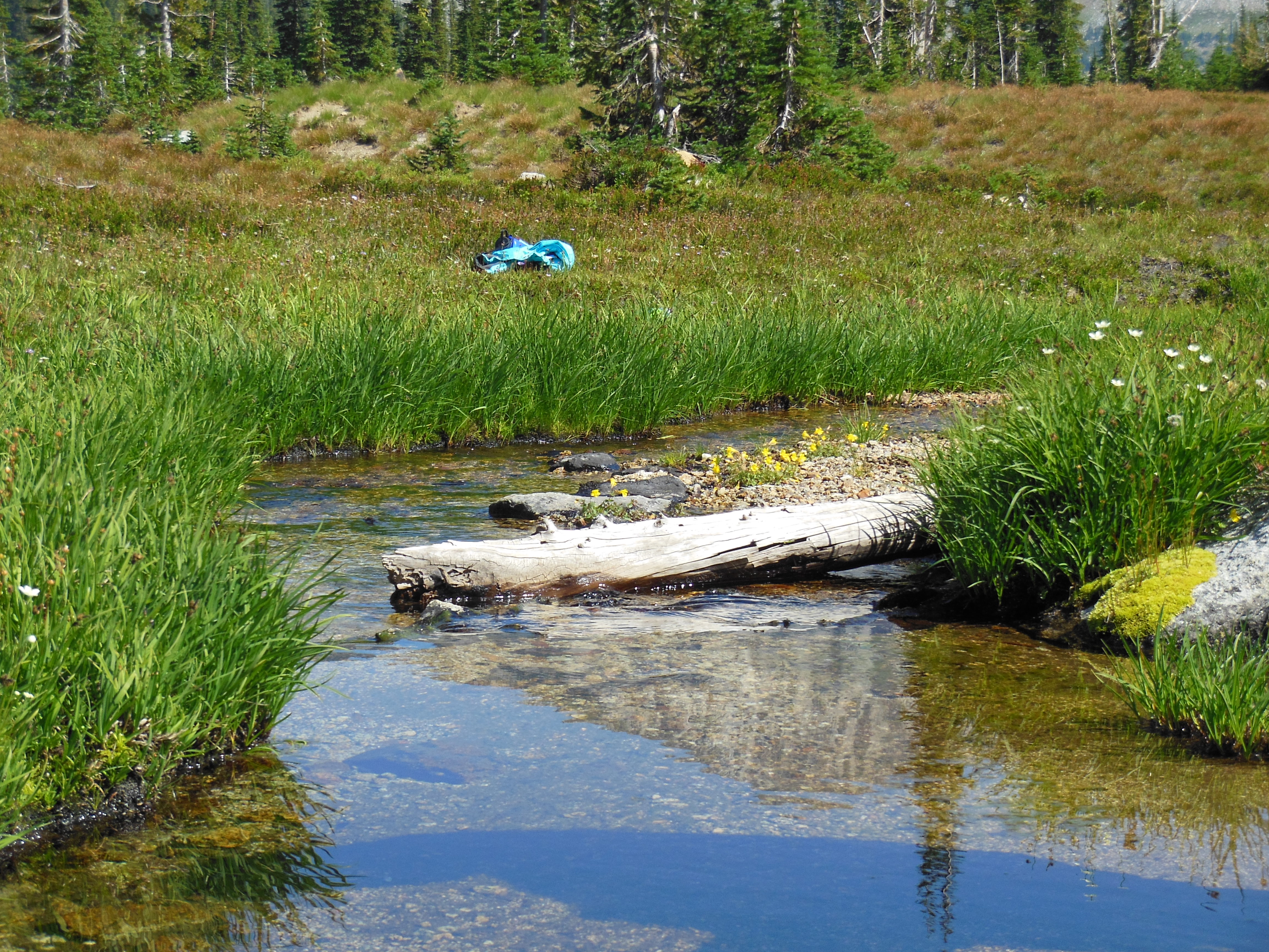 We siesta’d back at the campsite again, and ate Lasagna for our main meal. After a nap, we started hiking toward Horton’s Pass. Somewhere along the way,we took a wrong turn and ended up on the wrong side of the creek. This would be the same creek that Rhys fell into and soaked himself from head to toe. So, we warmed Rhys up, set up camp for the night, and would scout things our in the morning when it was warmer and lighter.