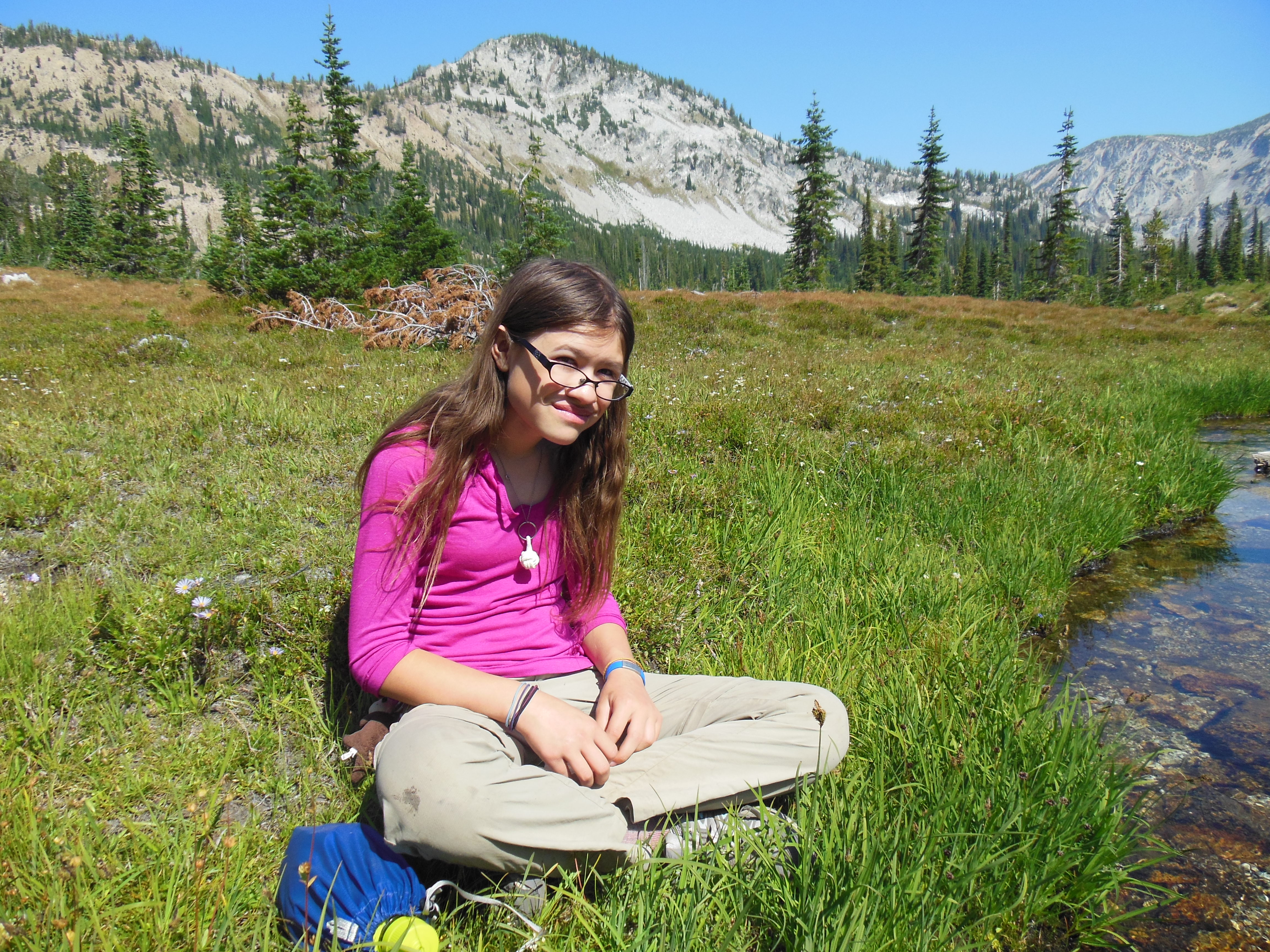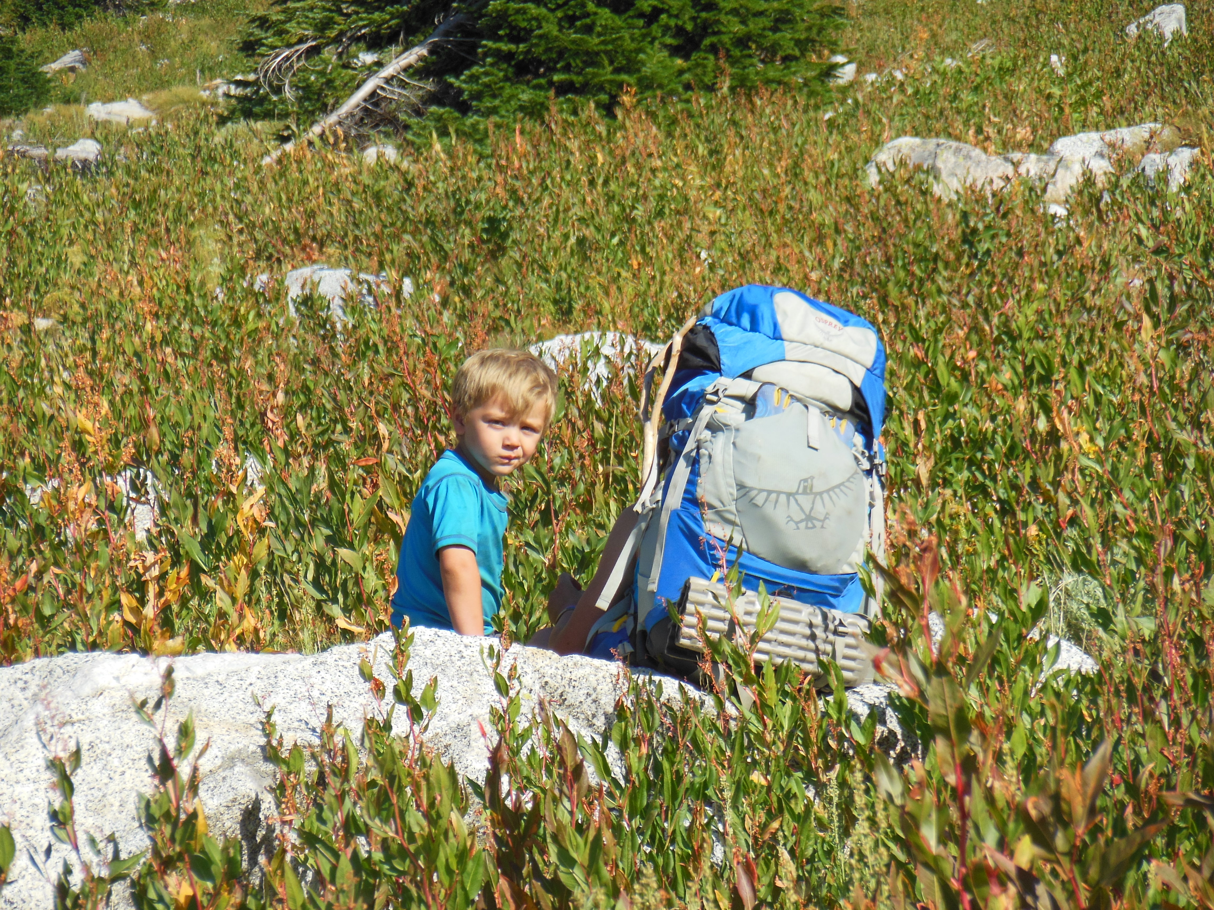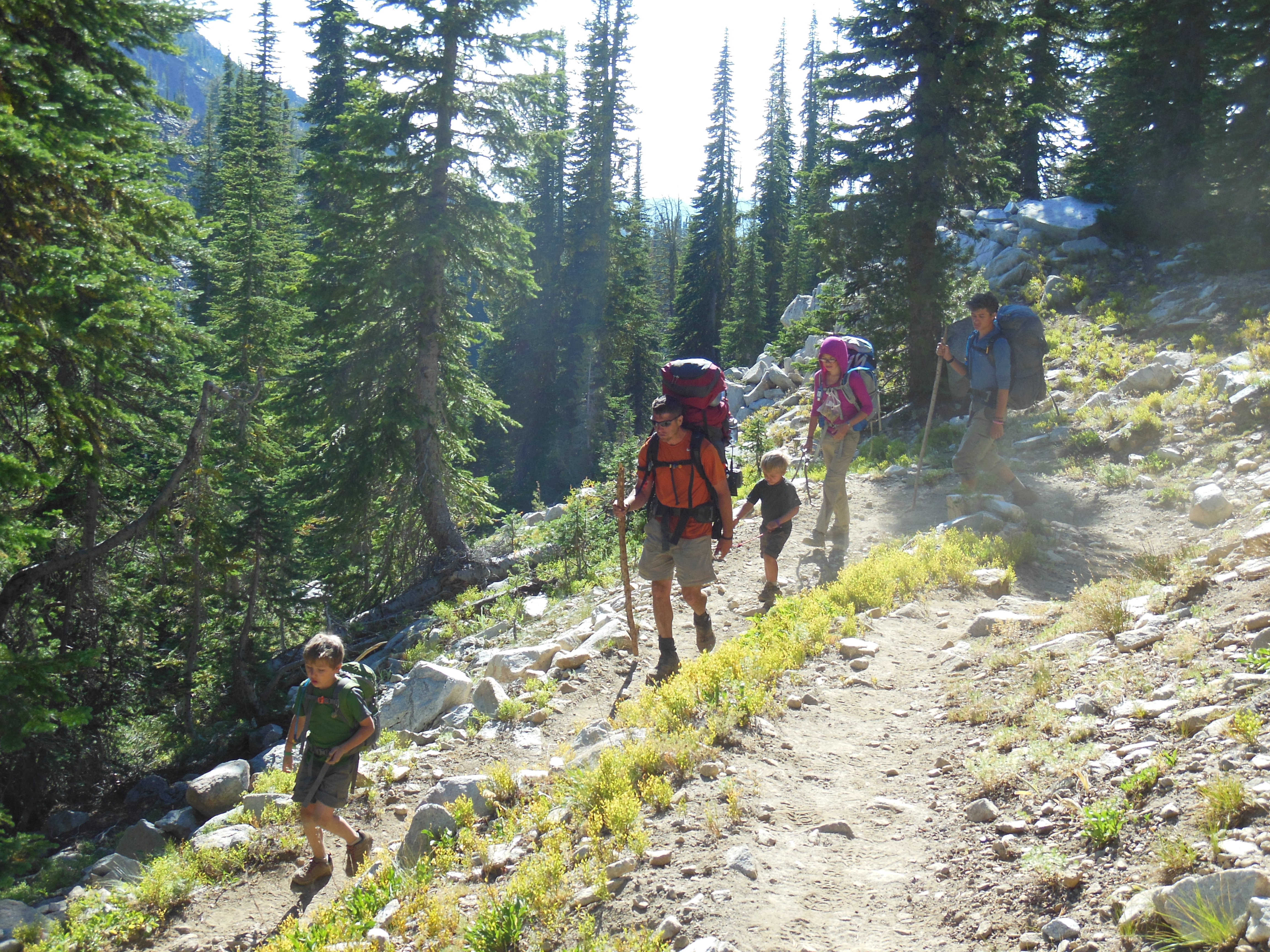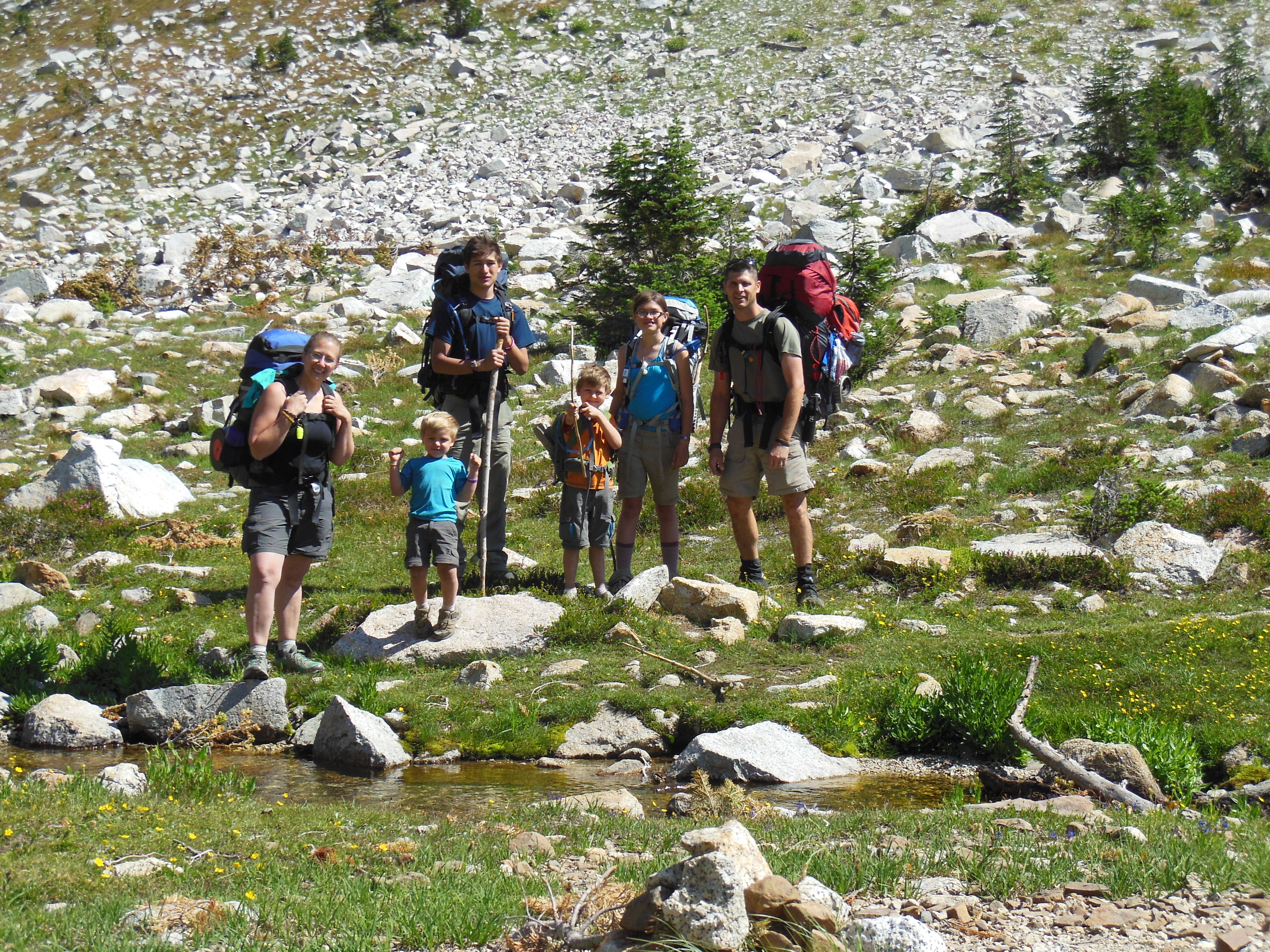Taylor and Ellie kept Rhys and Keenan entertained all day with stories and playing “Honey I Love You…” We hiked past Frazier Lake, and Little Frazier Lake, and then continued up Hawkins Pass.