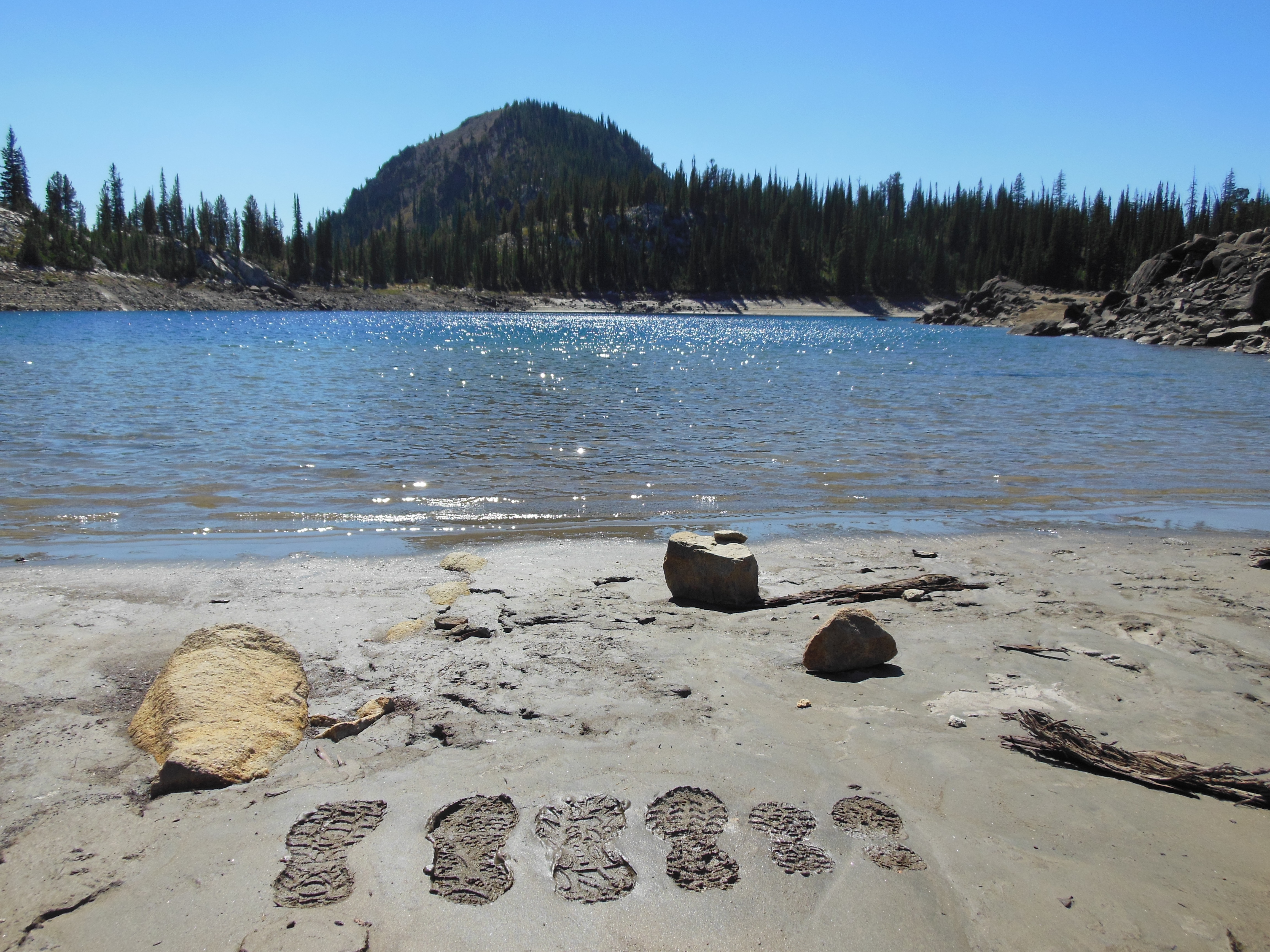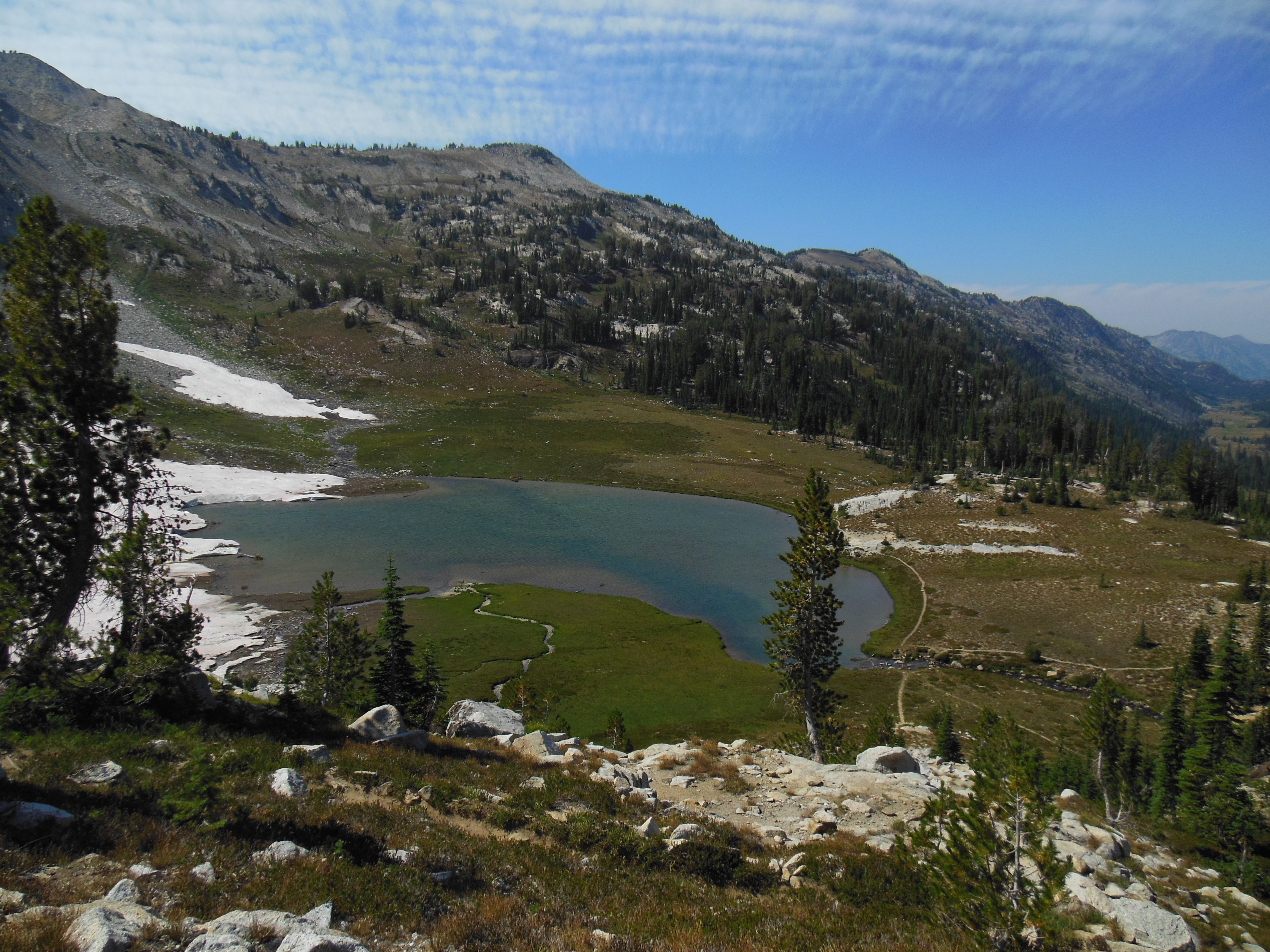 Moon Lake was pretty. The kids all waded in the water. Cory caught up to us, and we continued the hike toward hidden lake.