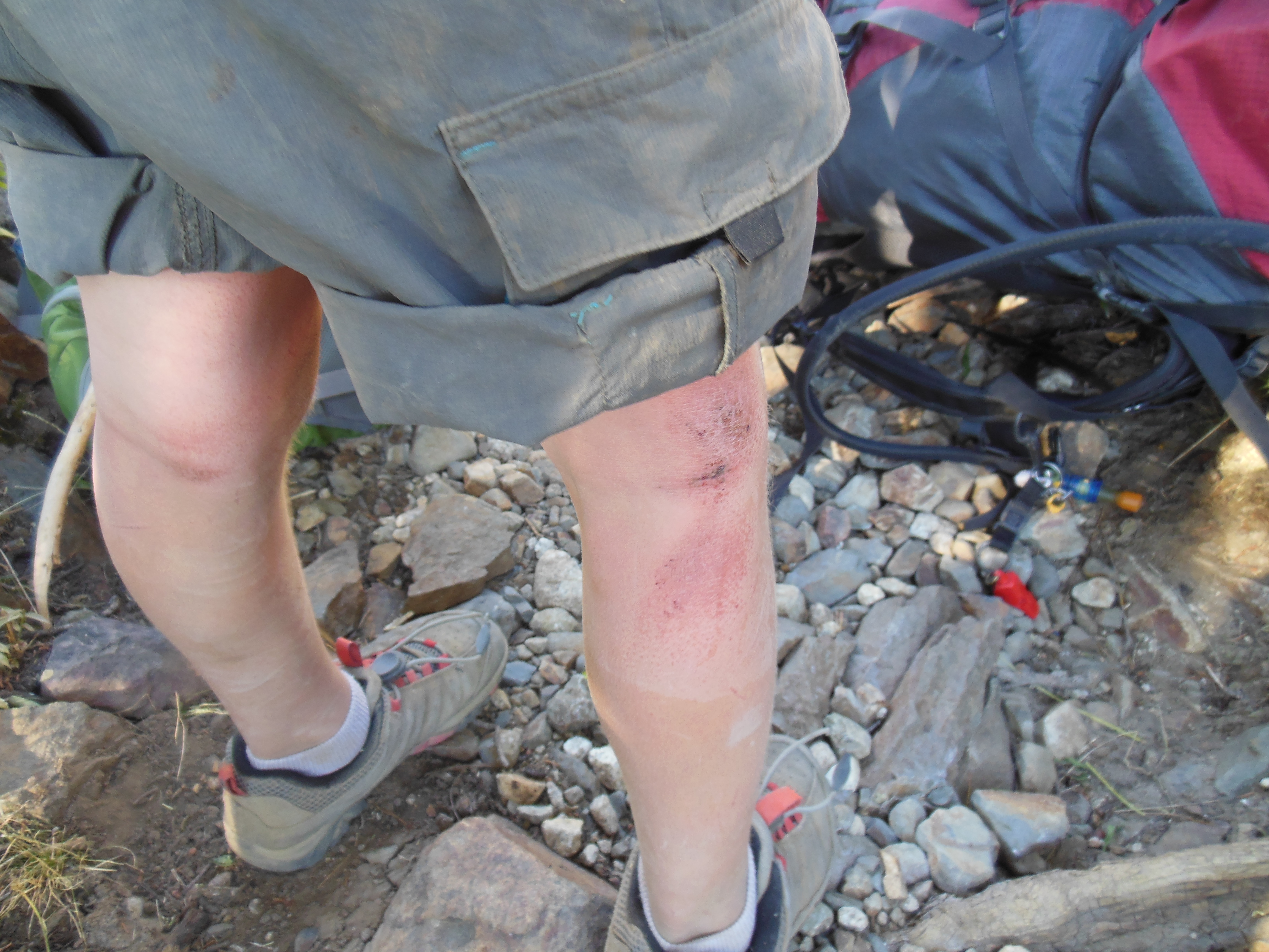 We hiked to Curtis Creek, and filtered some water. We decided it was a great place to eat dinner. While dinner was cooking, Keenan was stung on the ear by a bee. Then, while Ellie was mixing her dinner (Greens & Reds) she dropped the bowl, and it splashed hot potatoes on Keenan’s face. Only 2.5 miles into the trip, and Keenan was already getting beaten up. However, he handled it all well.